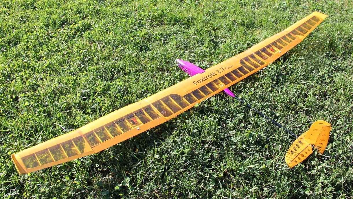 The Foxtrott 2.7 is an easy to fly and build 2.7m (107″) span all wood kit. Substantially larger than a 2m model it has a great presence in the air and a performance to match. The three piece wing has generous dihedral for good stability and ailerons and spoilers for good control, safe dethermalising and easy landings.