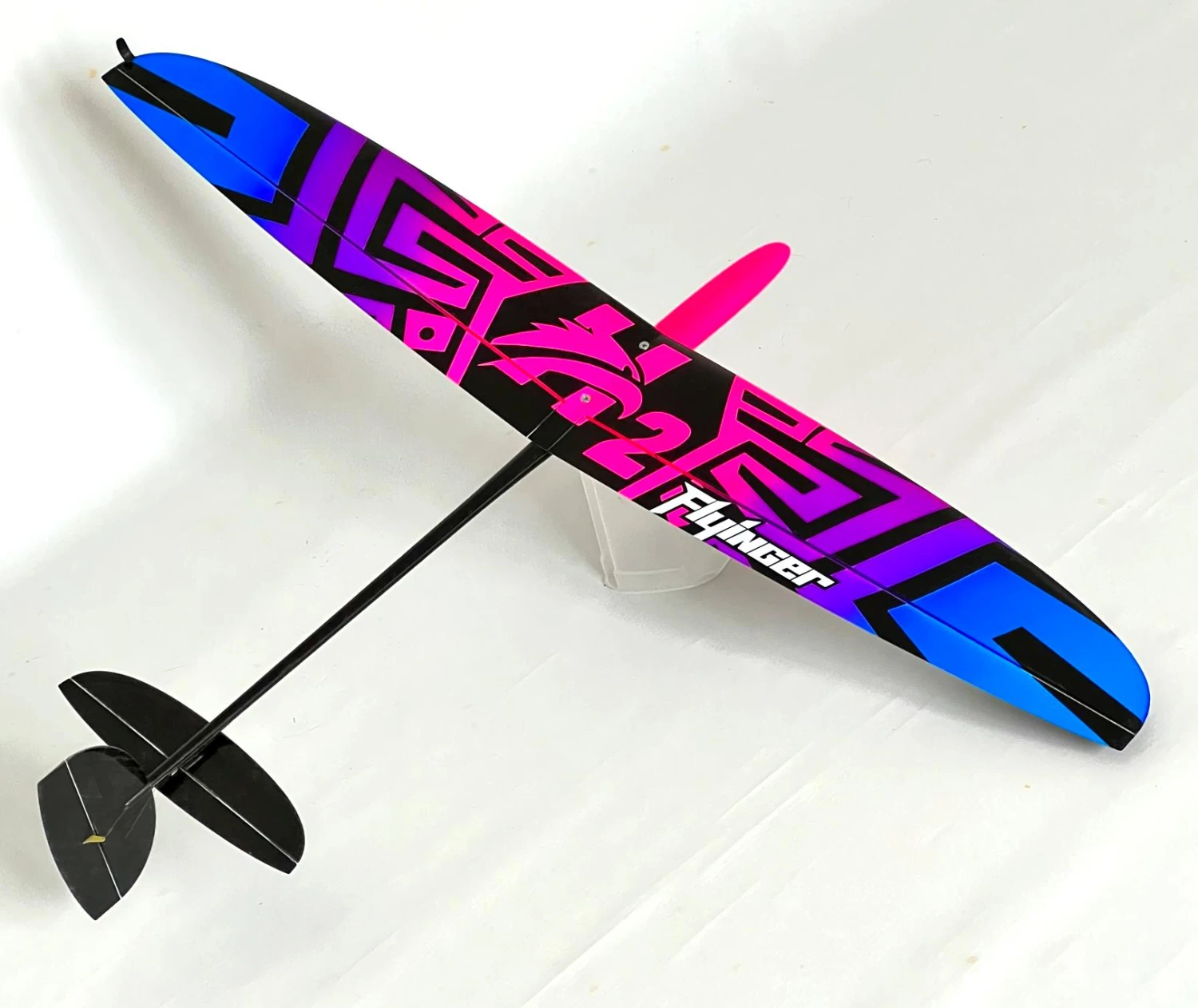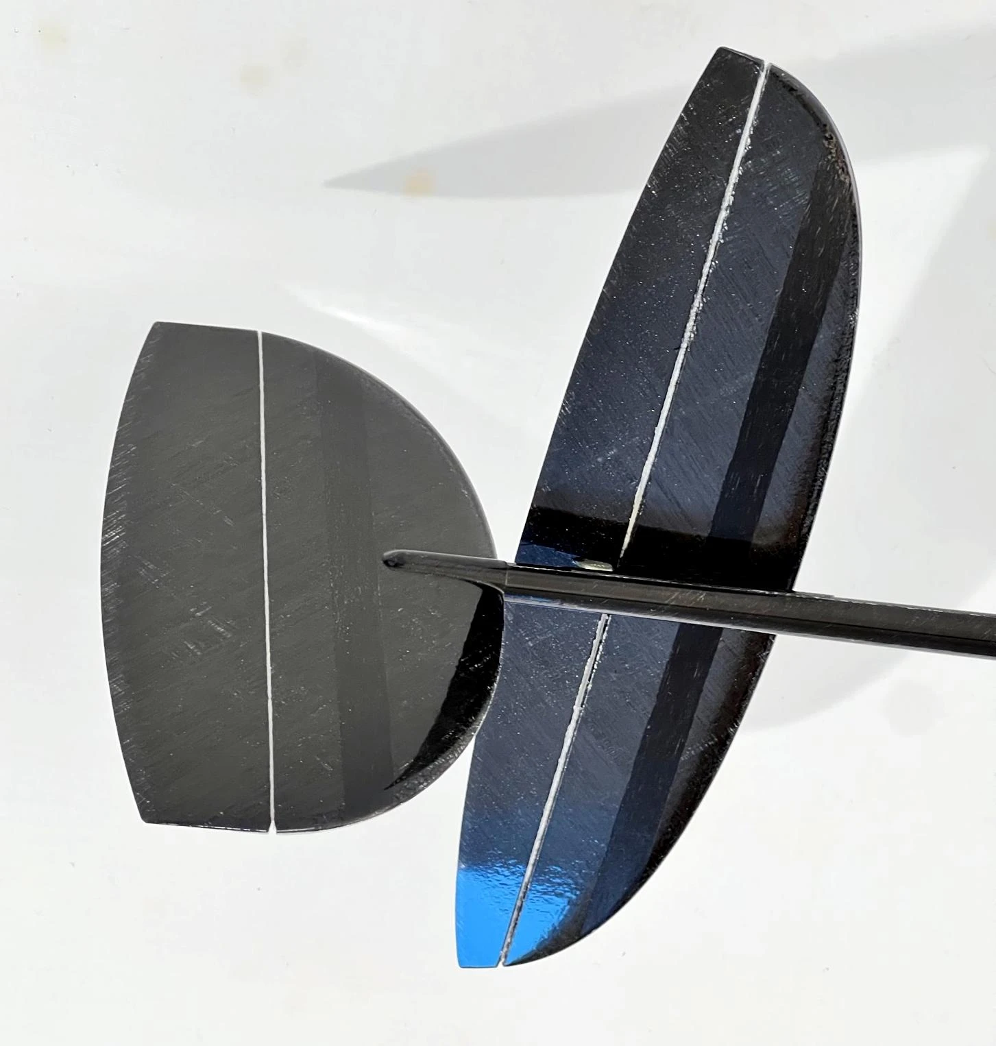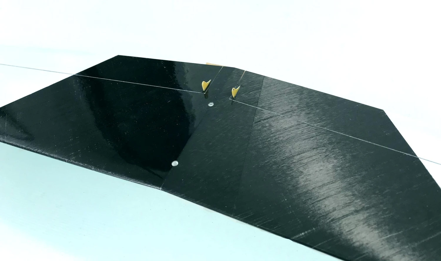 The Hawk 2 wing is solid molded with a glass or spread carbon skin over a CNC cut foam core. The wing has a good surface finish ensuring low drag and longevity. The ailerons are fabricated with a living hinge. The only work required to finish the wings is installing the throwing blade and control horns.