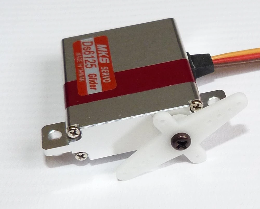 The MKS DS6125 Glider Wing Servo is one of the best wing servos currently available. Its unbelievably good geartrain, strong alloy case, and excellent feedback system interfaced to brilliant firmware that drives the FET output staged amplifier, all make this the wing servo of choice for competition and all fast saiplanes.