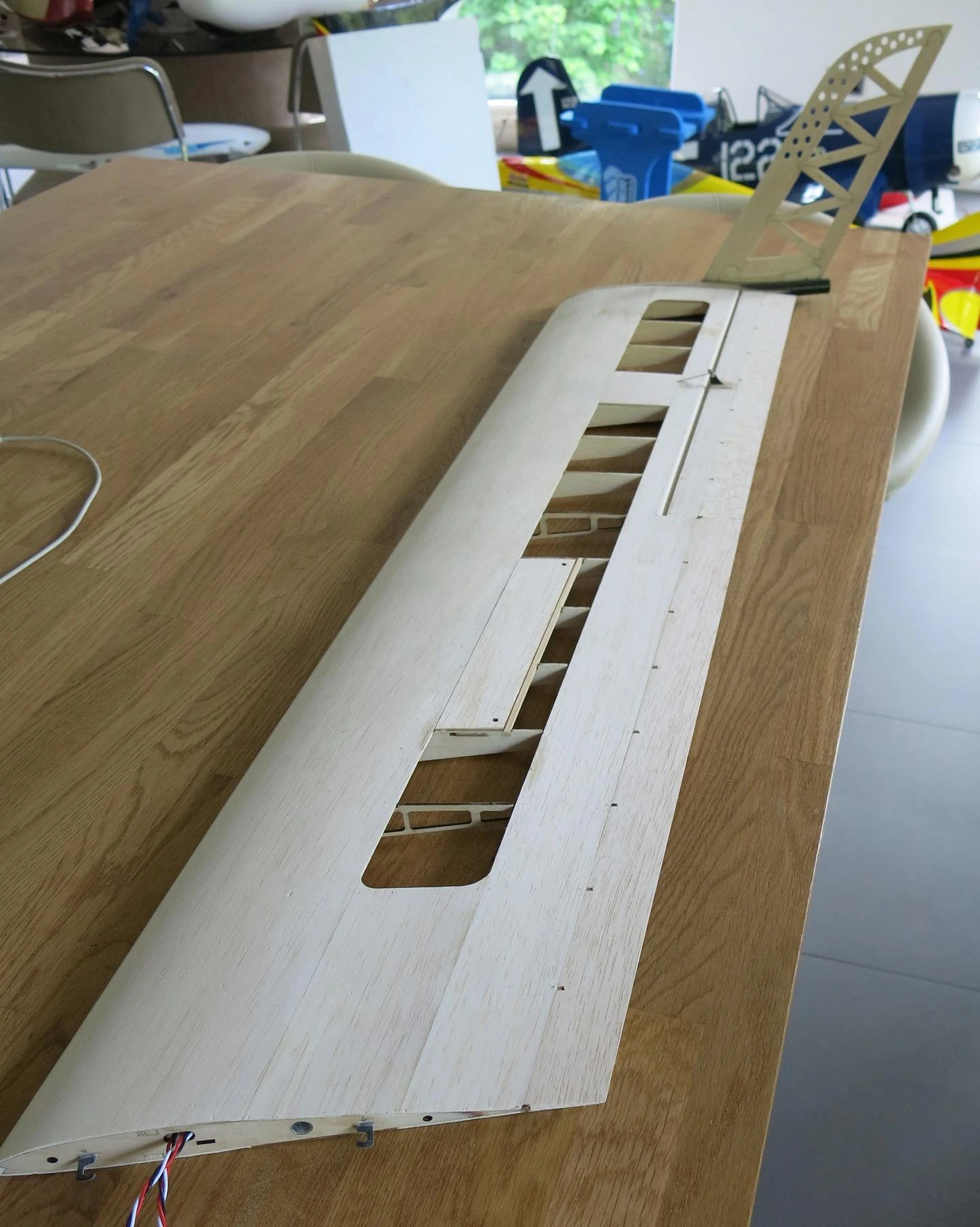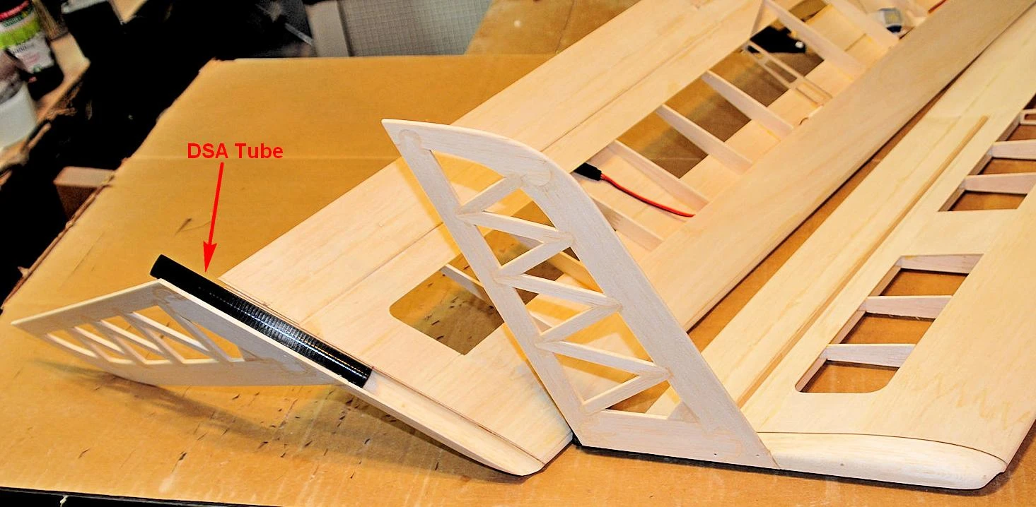 The winglet mount incorporates a Druck-Sog-Ableitung (DSA) tube. DSA means pressure-suction discharge and improves the flow conditions in the wing-winglet transition area. This is a major cause of the very good-natured behaviour and the controllability in slow flight. The DSA tube was originally a light carbon fibre tube but this was decreed to exceed the limited amount of carbon fibre allowed in the German version of the F3-RES rules. Consequently the model is offered with a carbon or a plywood tube which is nearly as light and complies with all interpretations of the rules.