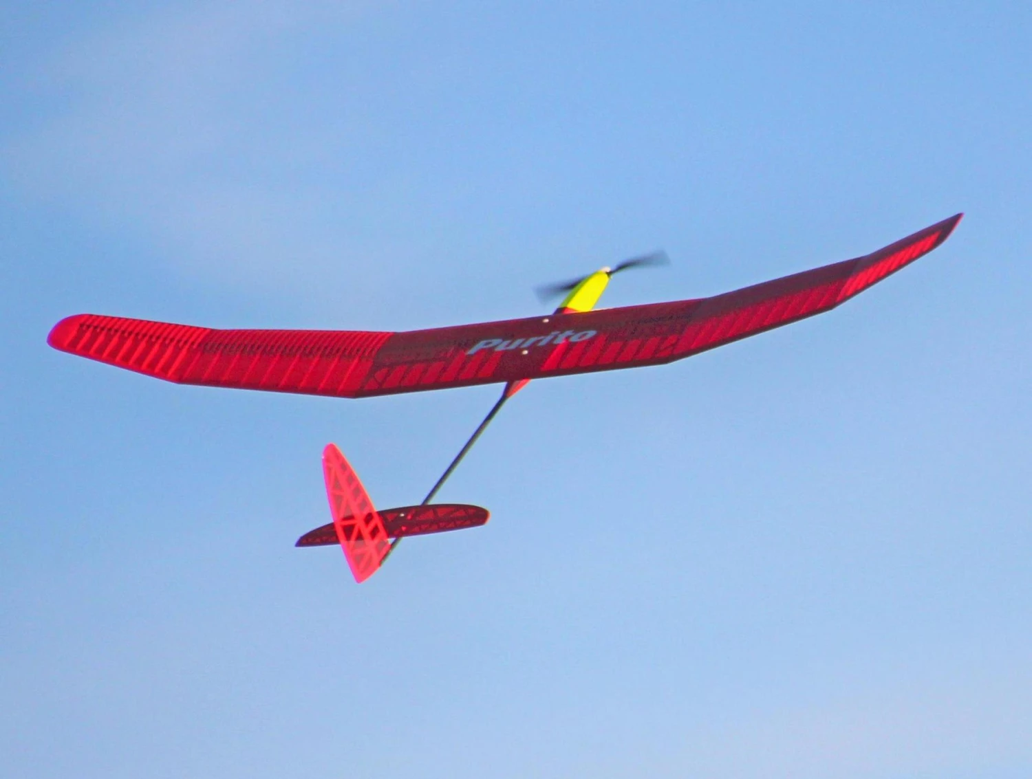The Purito flies like a homesick angel and despite its light weight the model has a surprisingly good speed range. As Greg wrote in the RCGroups thread “The big wing bestows a good launch, even when the wind is light; the airplane itself has little drag, so displays very good legs; handling is easy, allowing the pilot to concentrate on thermalling; and finally, the spoilers really make spot landings quite easy.”