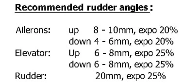 Recommended RC equipment: 4x small servos for ailerons, elevator and rudder.